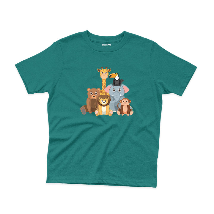 Super comfortable and durable T-Shirts for your naughty little ones! Let the jungle energy flow into your cute little ones with our Crazy & Cute Wild Animals Design Printed T-Shirt for Kids.